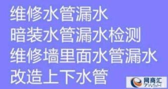四、水管断裂维修、水管漏水维修、卫生间水管维修、厨房水管维修、PPR水管维修、PVC水管维修、铝塑水管维修、铜水管维修焊接、不锈钢水管维修、暗装漏水维修、明装水管维修、三角阀断裂维修(阀门断裂于水管中)所有有关水管维修的、我们都能帮你又快又好的修好。专业维修家庭、单位、公司出现的水管断裂、水管渗水、水管漏水、暗管漏水、软管漏水、阀门漏水等现象,并且专业更换水表、更换阀门、更换混水阀、安装维修上、下水管、改造各种水管小_百_姓_网。管道疏通,疏通各种下水道,地漏疏通:采用特制技术设备、专业疏通水泥、沙子、头发等各种原因造成的地漏堵塞。 (2)马桶疏通:因为年成久了,而产生了尿碱、使之下水慢,易堵塞,打蹲坑上的尿碱小_百_姓_网。