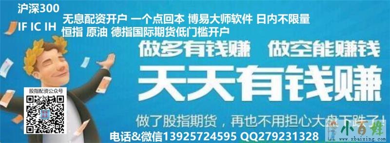专业股指期货无息配资,全国服务:1、最低五千可以配资一手交易;2、IF/IC/IH三大主力交易合约;3、超低手续费300双边(无息);4、当天结算,自由出入金;5、博易文华交易软件;6、法人账户出入金...