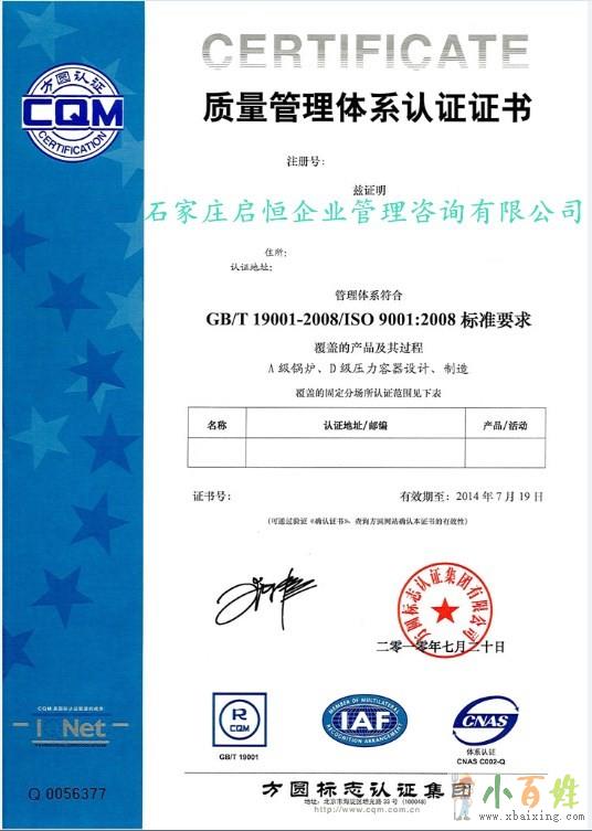 ISO9000族标准是国际标准化组织(ISO)于1987年颁布的在全世界范围内通用的关于质量管理和质量保证方面的系列标准小_百_姓_网。ISO9001质量体系认证是指第三方(认证机构)对企业的质量体系进行审核、评定和注册活动,其目的在于通过审核、评定和事后监督来证明企业的质量体系符合ISO9001标准,对符合标准要求者授予合格证书并予以注册的全部活动。