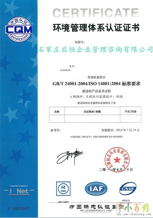 ISO14001环境管理体系(EMS)是组织整个管理体系中的一部分,用来制定和实施其环境方针,并管理其环境因素,包括为制定、实施、实现、评审和保持环境方针所需的组织机构、计划活动、职责、惯例、程序、过程和资源小 百 姓 网。ISO14001是国际标准化组织(ISO)于1996年正式颁布的可用于认证目的的国际标准,是ISO14000系列标准的核心,它要求组织通过建立环境管理体系来达到支持环境保护、预防污染和持续改进的目标,并可通过取得第三方认证机构认证的形式,向外界证明其环境管理体系的符合性和环境管理水平。