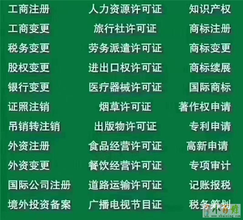 公司专业承接代办工商注册、公司变更、验资、增资、代理记账、报税、一般纳税人申请、各类经营许可证、工商年检、清算审计及注销营业执照、税务、组织机构代码证、一般纳税人申请等一系列与工商、税务相关的业务。 ...